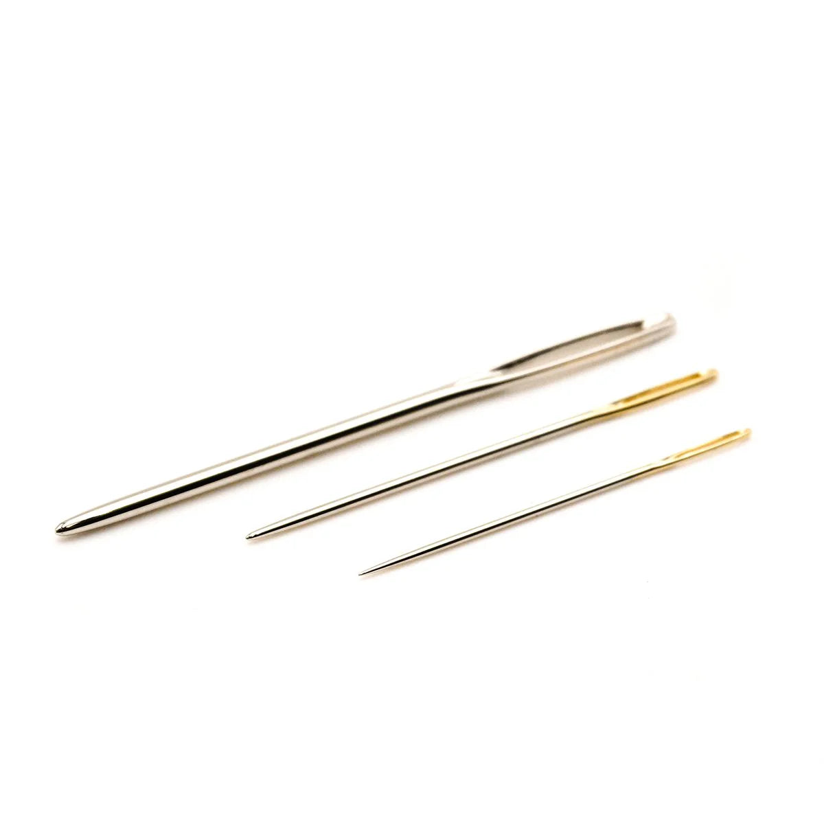 A darning needle set in a convenient needle shaped case with a screw on cap that stores needles neatly. (3 needles/package)